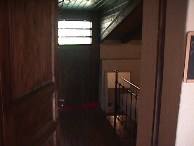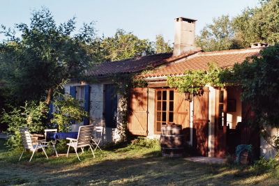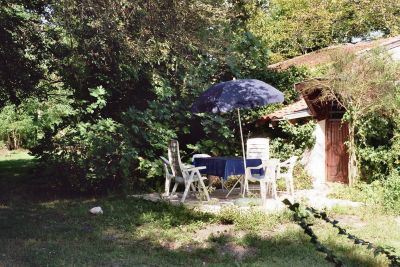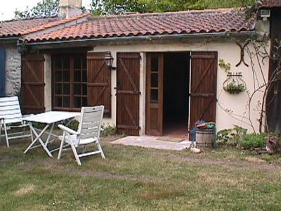 Der Hinterausgang führt über eine kleine Terrasse in den Garten.