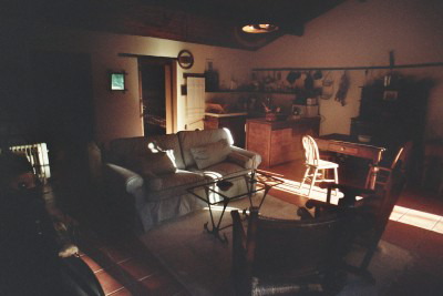 Im Wohnzimmer kann zusätzlich eine Schlafcouch aufgeklappt werden,