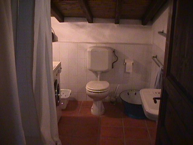 Bad mit Dusche, Waschmaschine und Trockner.